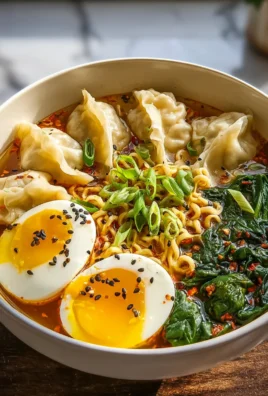 Leckere Dumpling-Ramen-Bowl mit Rindfleisch und Gemüse
